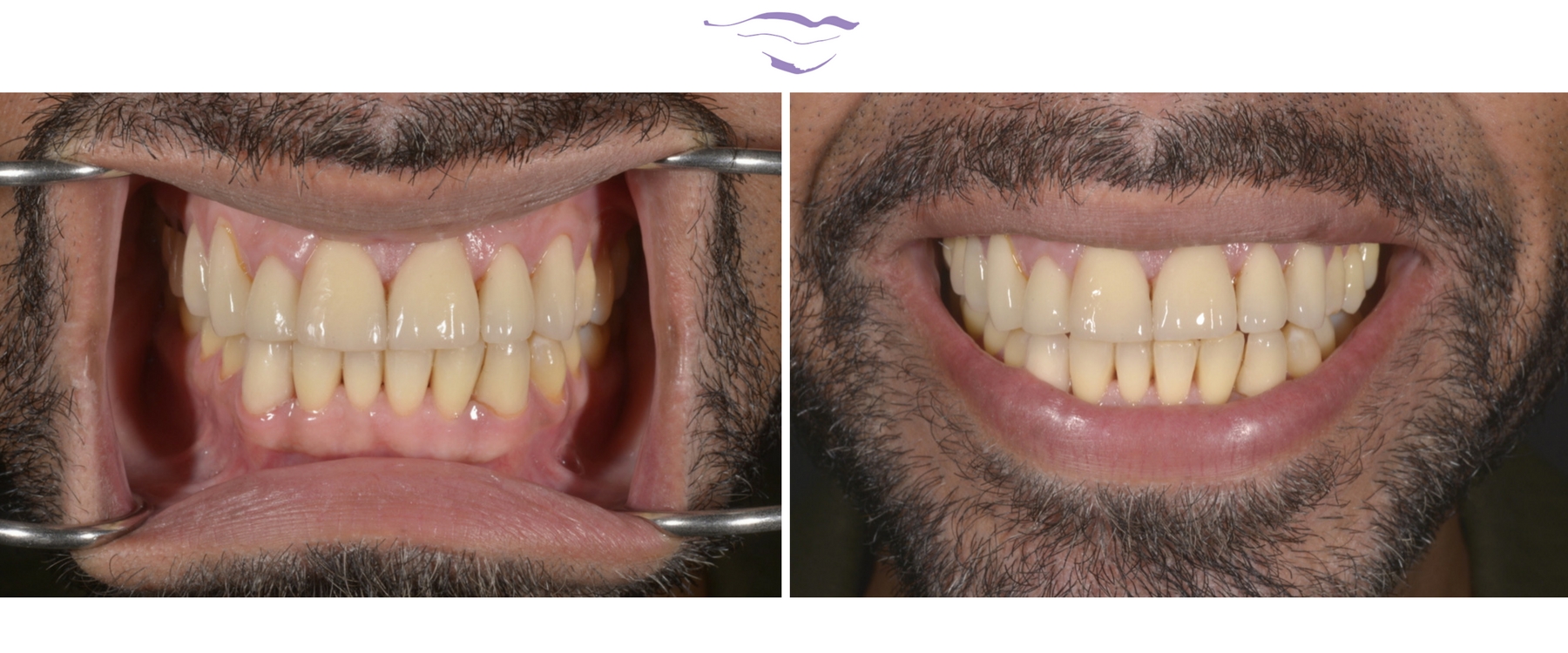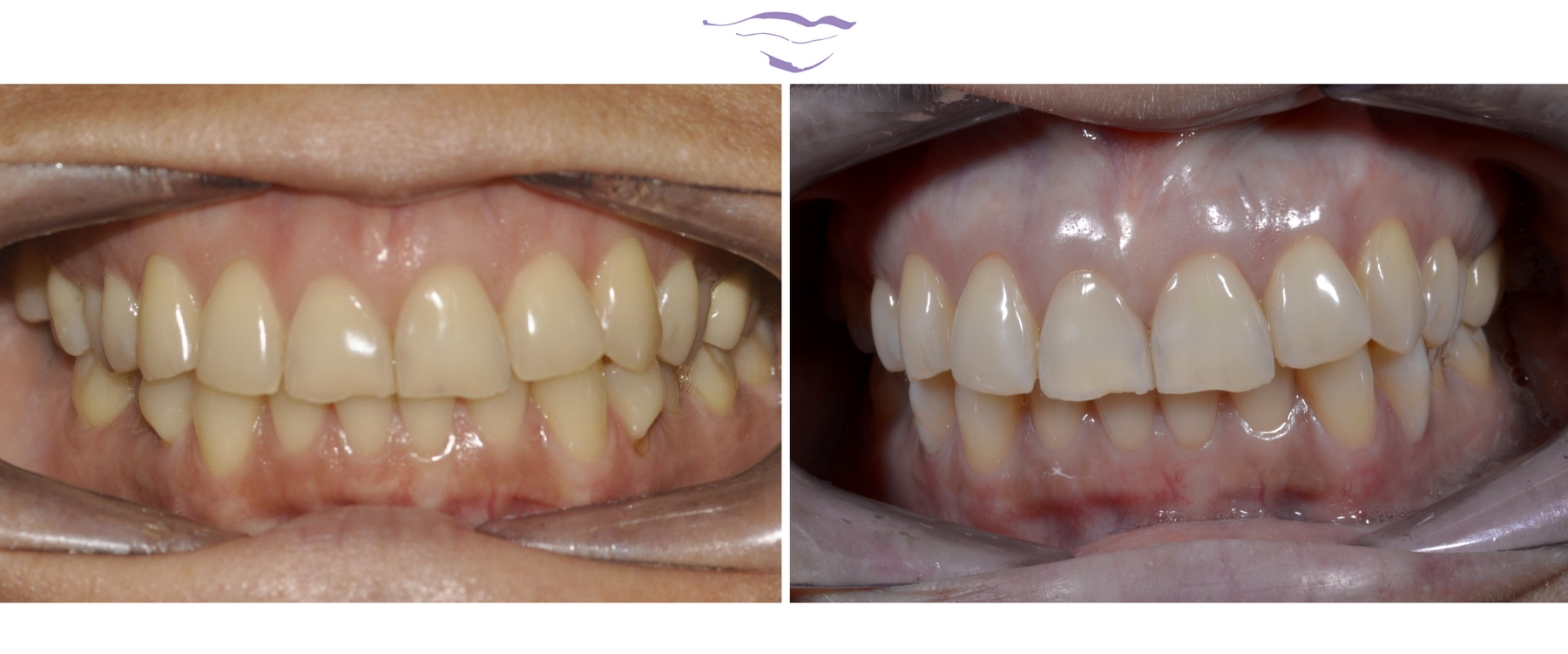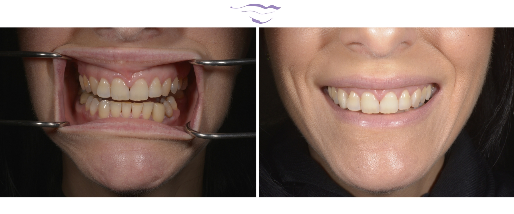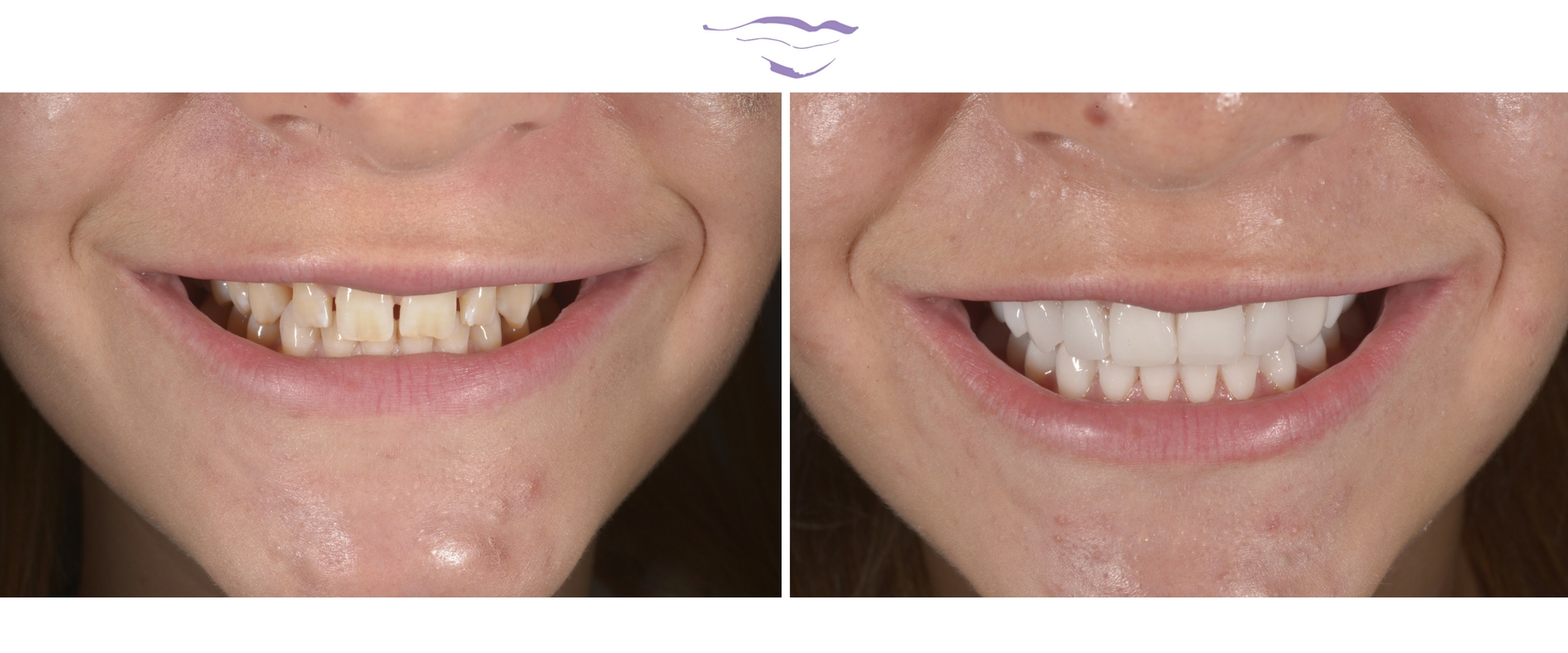 • Facettes non taillées haut et bas + réfection 1 couronne haut / 1 couronne bas (F - 30 ans)