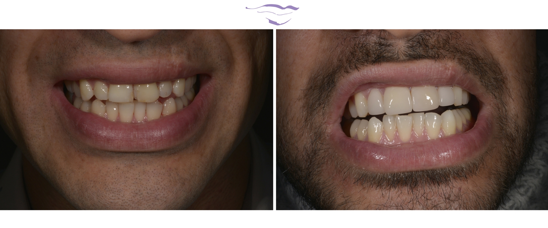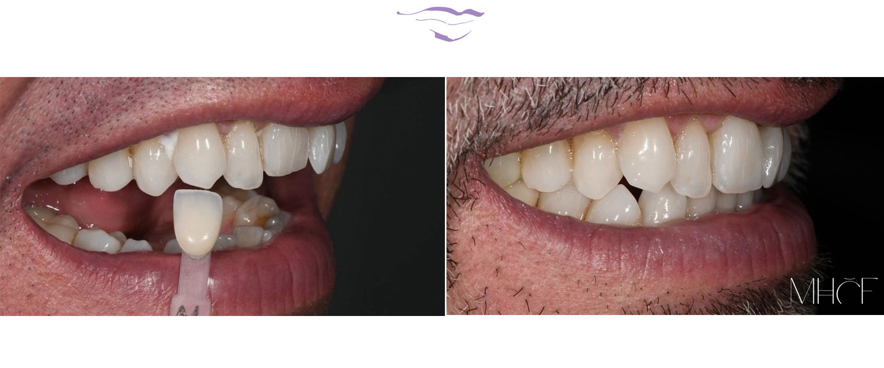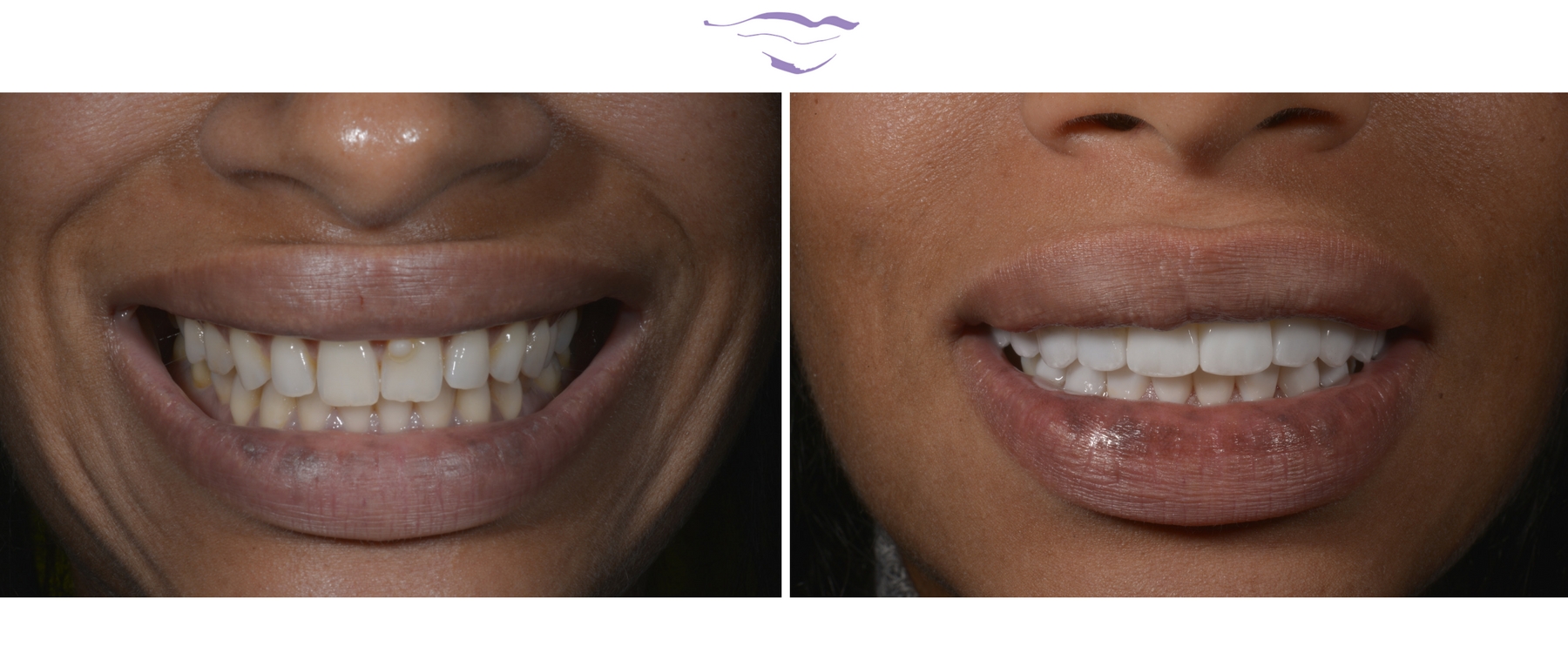 • Facettes non taillées haut et bas + réfection 1 couronne haut / 1 couronne bas (F - 30 ans)