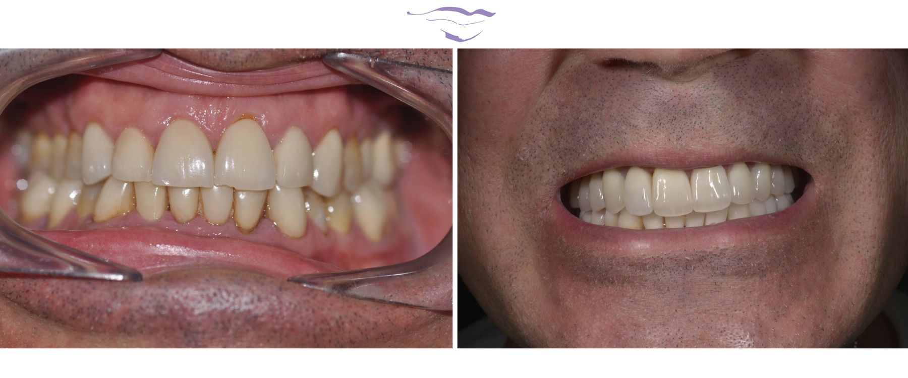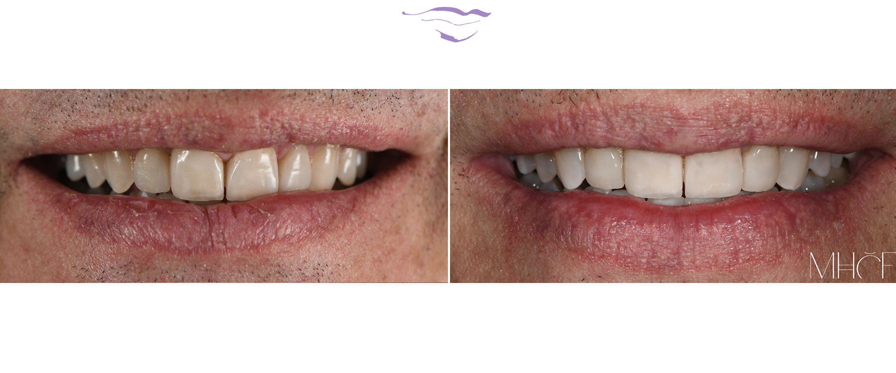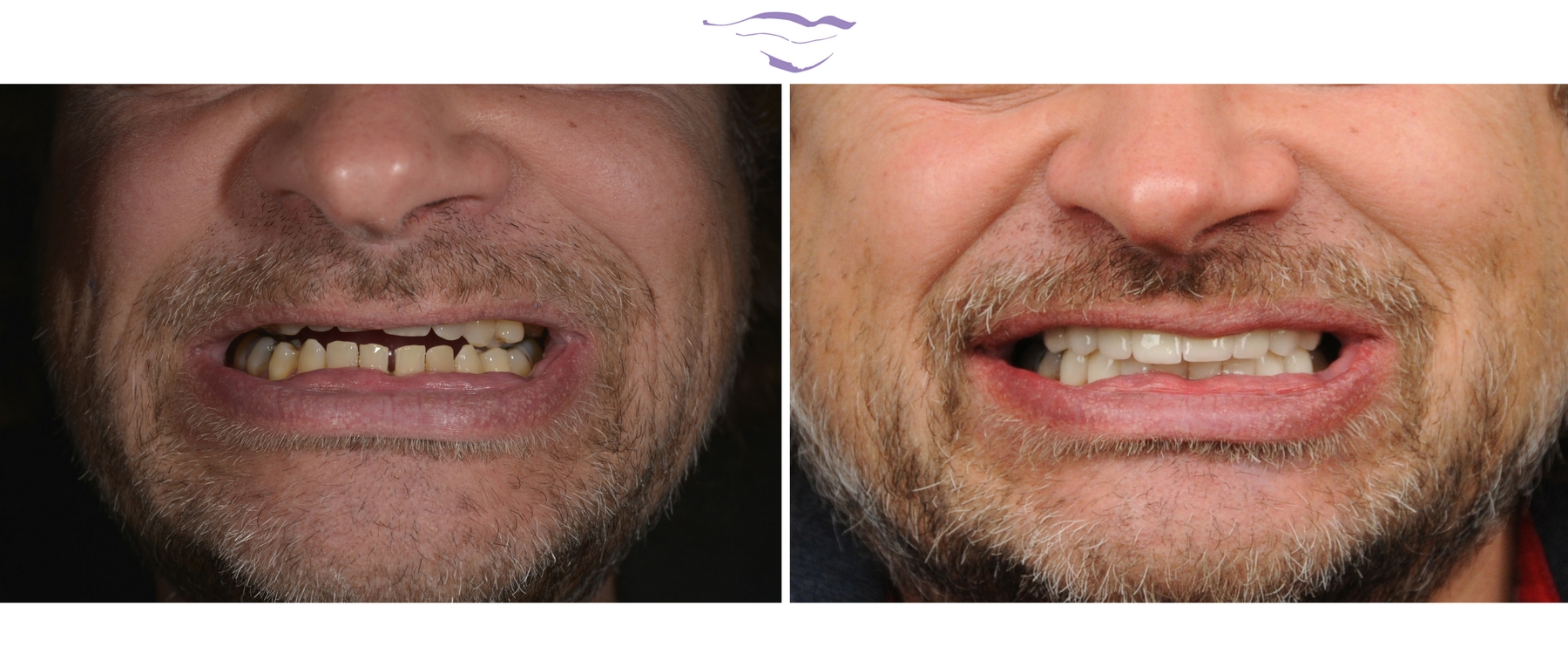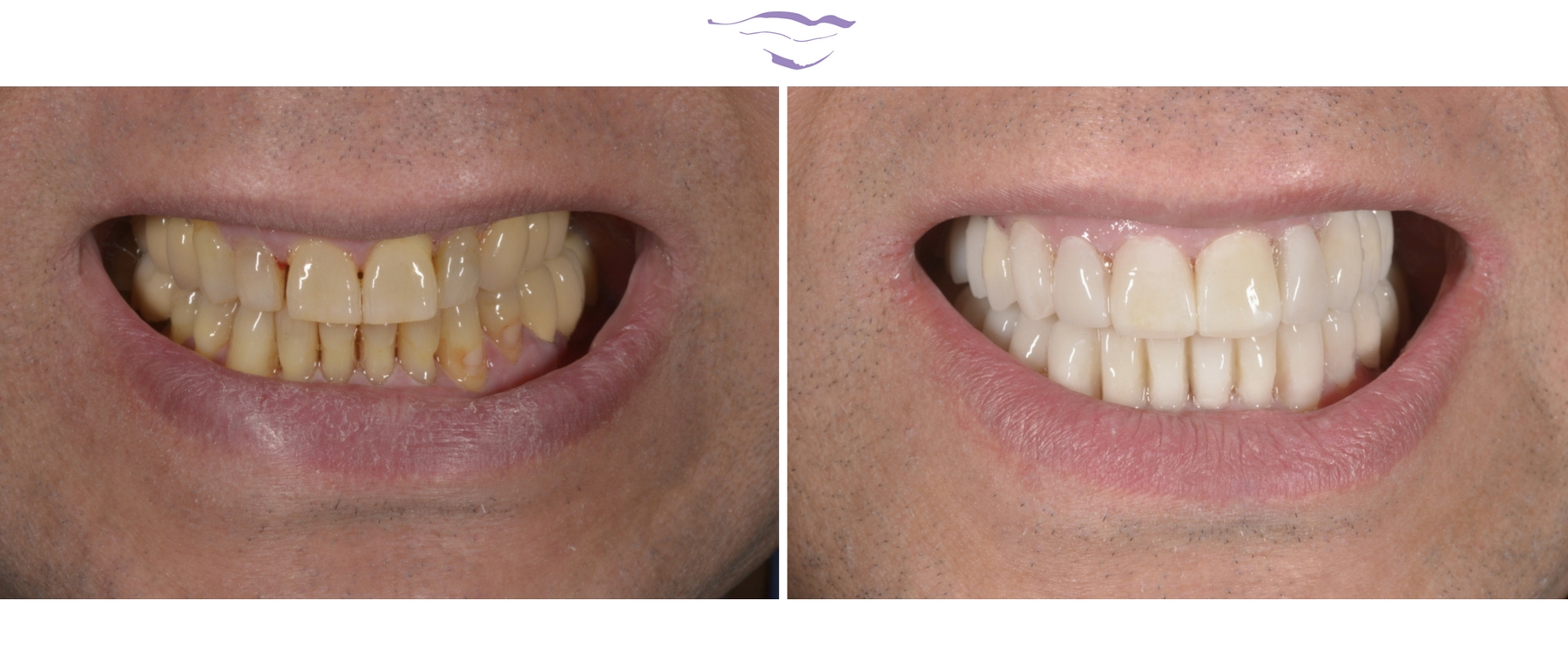 • Facettes non taillées haut et bas + réfection 1 couronne haut / 1 couronne bas (F - 30 ans)