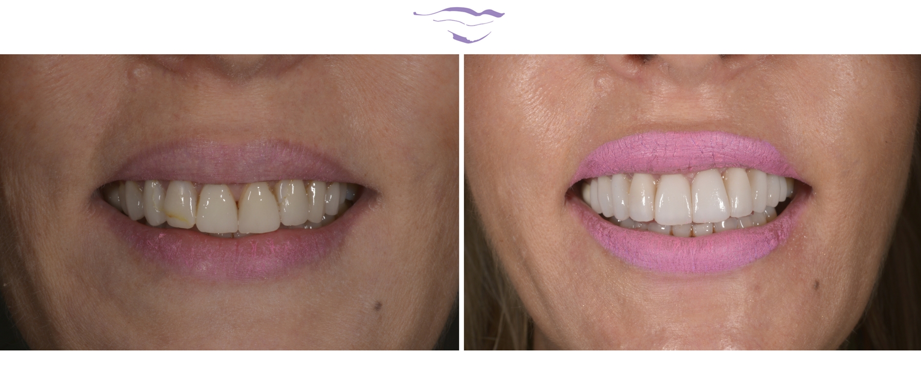 • Facettes monolithiques bas + une en haut (F - 58 ans)