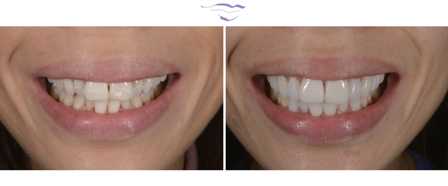 • Deux facettes non taillées sur incisives + éclaircissement techniques combinées (F - 24 ans)